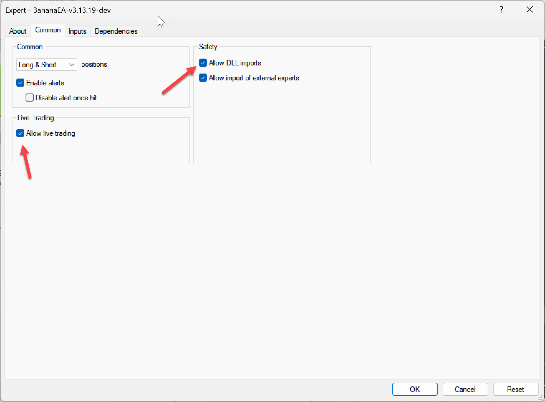 ### Enable Expert Advisors